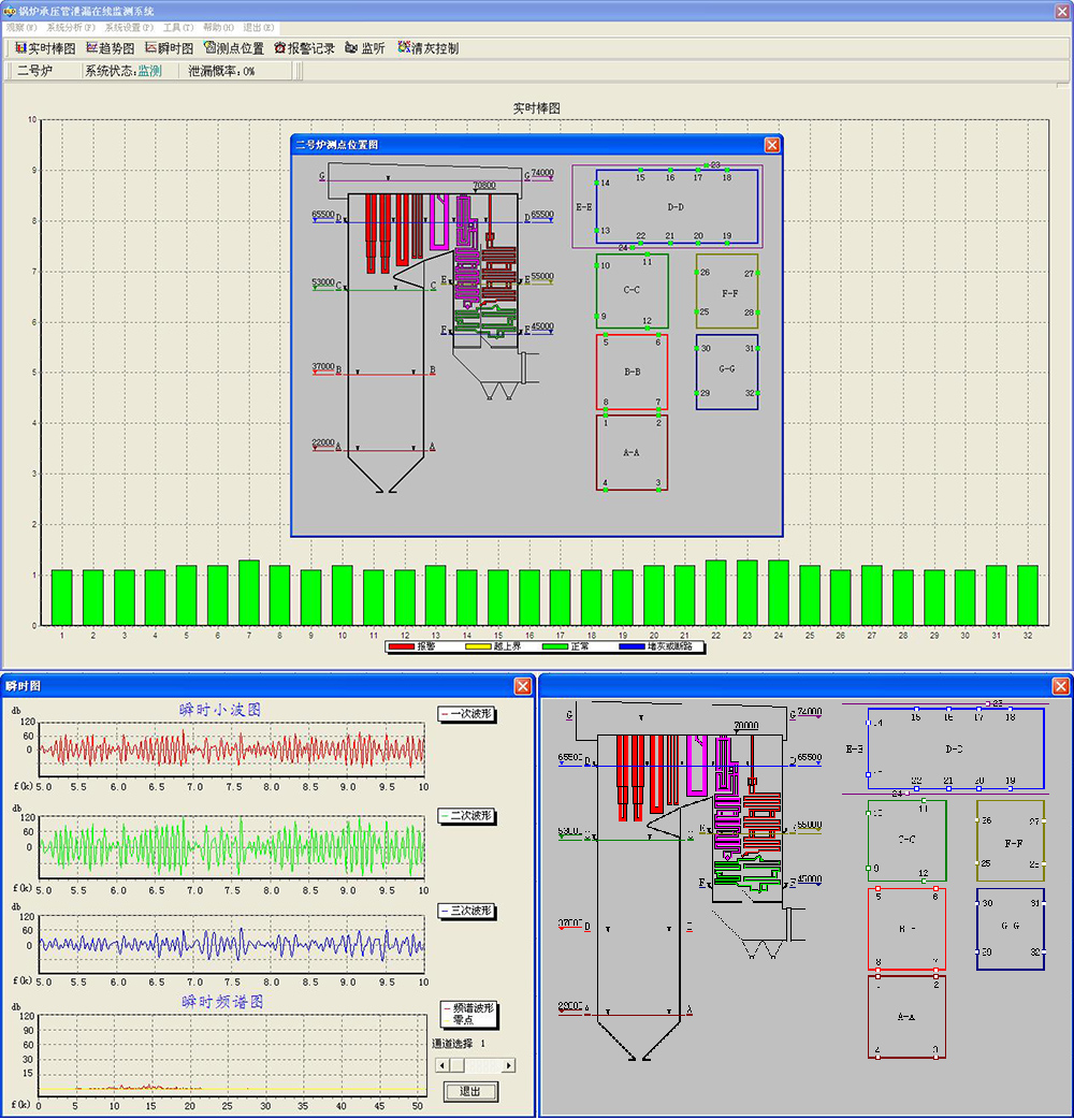 產(chǎn)品用于火力發(fā)電廠鍋爐承壓管泄漏在線監(jiān)測,將采集的數(shù)據(jù)進(jìn)行綜合分析,準(zhǔn)確甄別微小泄漏,實(shí)現(xiàn)鍋爐泄漏的早期報警。